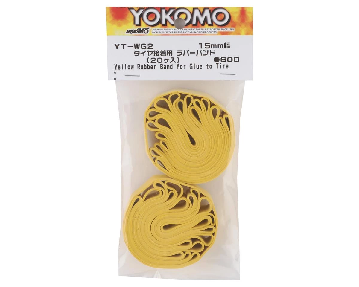 Yokomo 15mm Tire Gluing Bands. Package includes twenty glue bands.