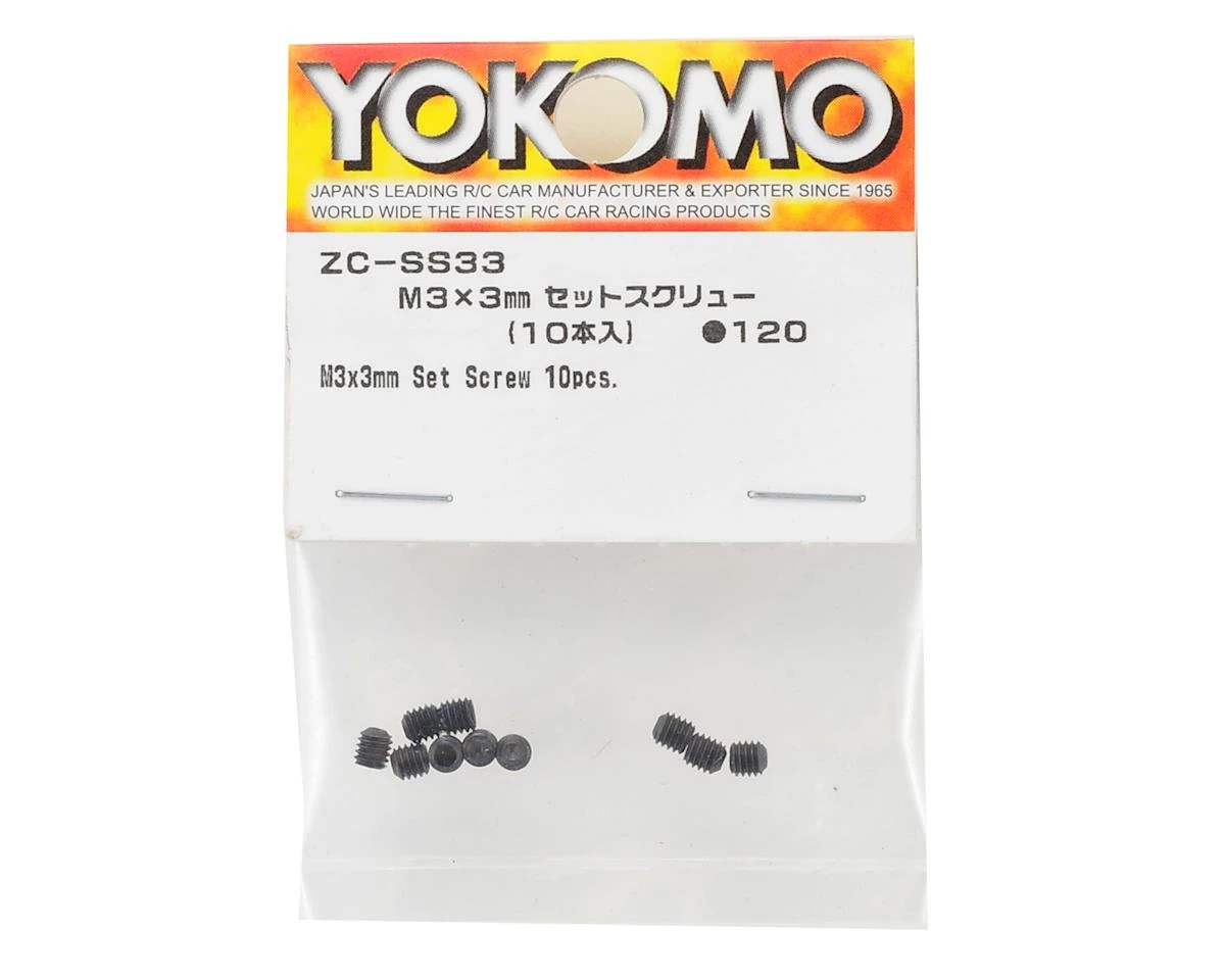 This is a pack of ten Yokomo 3x3mm Set Screws. These set screws are used for a variety of applications.