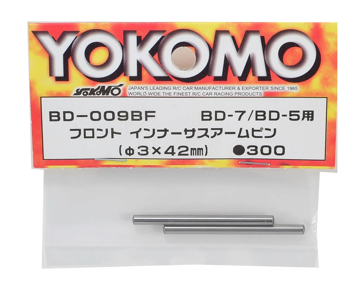 This is a pack of two replacement Yokomo 3x42mm Front Inner Suspension Arm Pins, and are intended for use with the Yokomo BD7 1/10 scale touring car.