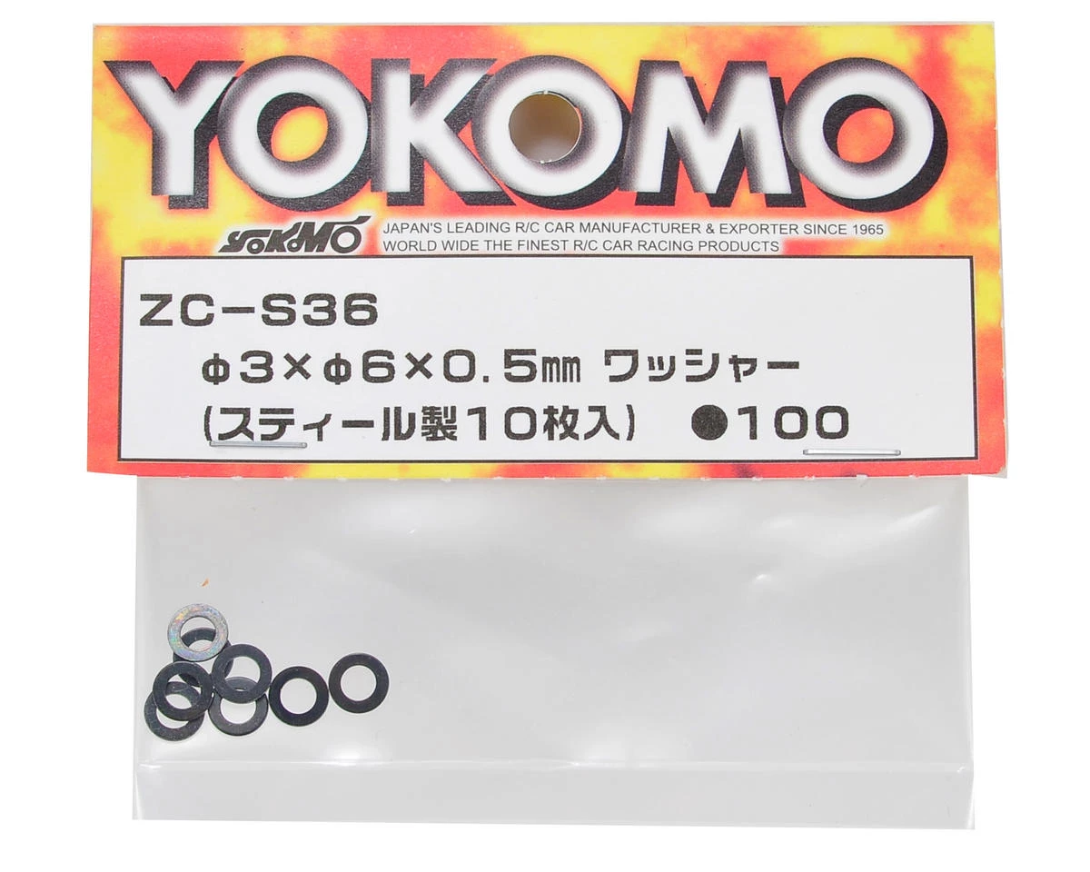 This is a pack of ten replacement Yokomo 3x6x0.5mm Steel Washers, and are intended for use with the Yokomo R12W 1/12 scale pan car.