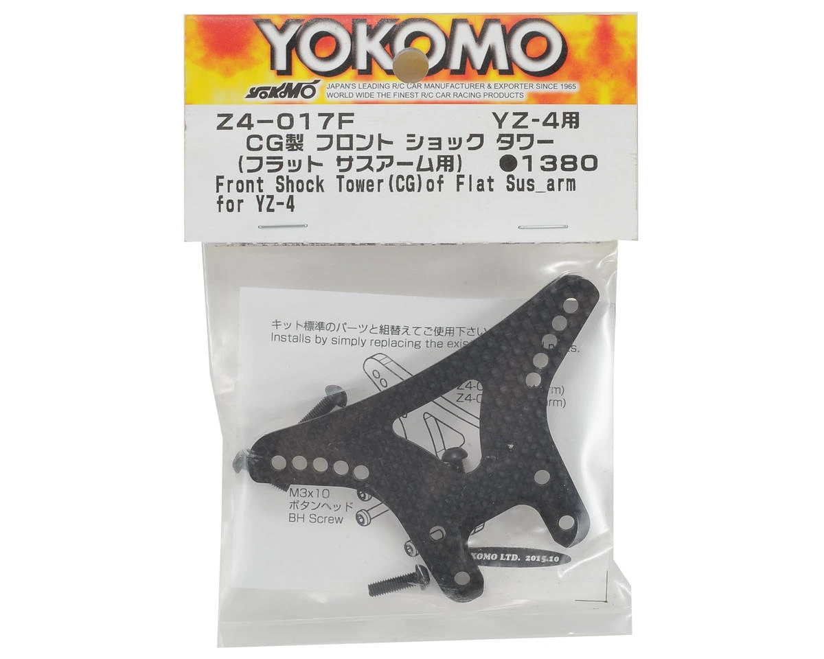 This is an optional Yokomo YZ-4 Carbon Fiber Front Shock Tower for use with the stock flat arms. This tower is 4mm thick and includes mounting hardware.