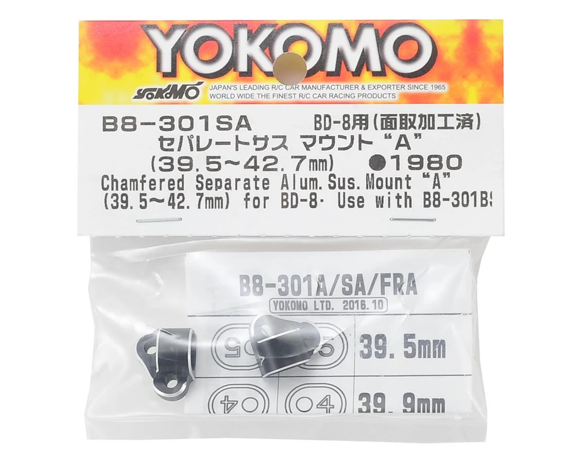 This is a replacement Yokomo Aluminum Separate Suspension Mount “A”. For use with B8-301BS.