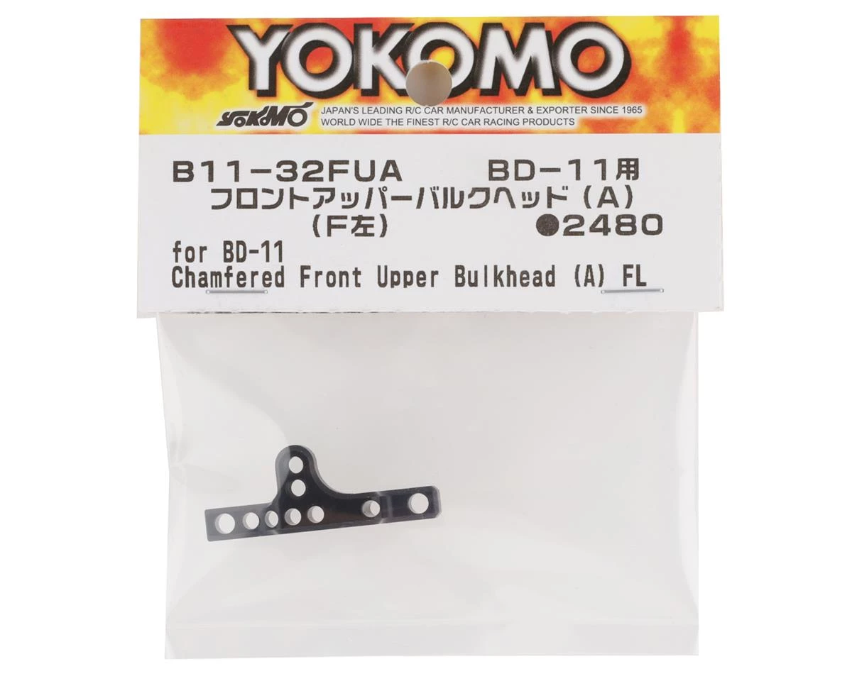 Yokomo BD11 Aluminum Front Upper Bulkhead. This replacement upper bulkhead is intended for the front of the Yokomo BD11. Package includes one upper front bulkhead.