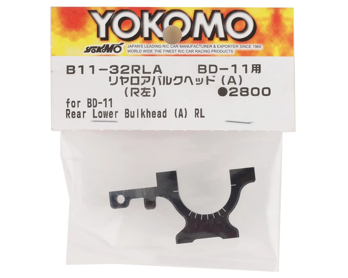 Yokomo BD11 Aluminum Rear Lower Bulkhead. This replacement lower bulkhead is intended for the rear of the Yokomo BD11. Package includes one lower rear bulkhead.