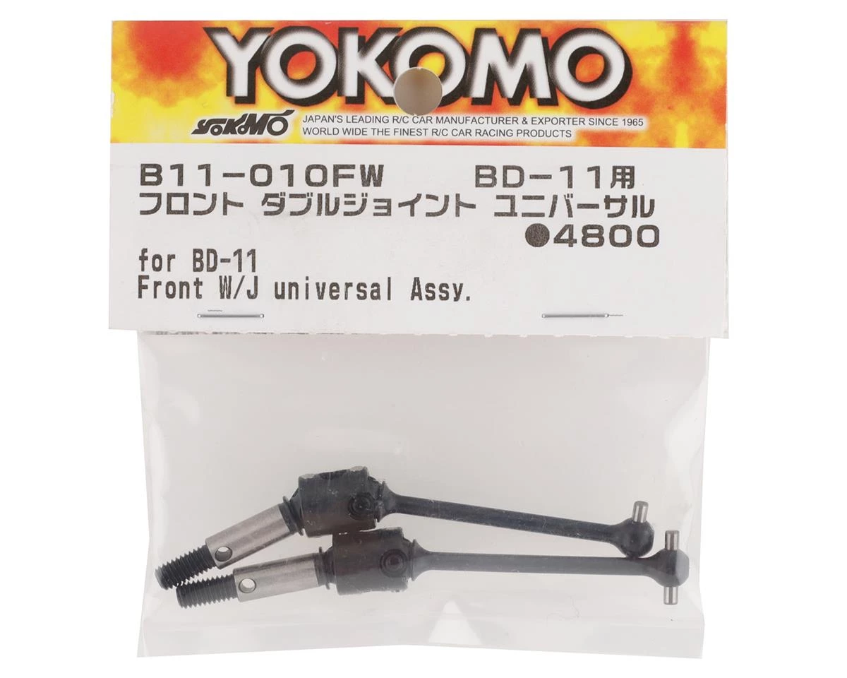 Yokomo BD11 Front Double-Joint Universal Driveshafts. These replacement driveshafts are intended for the Yokomo BD11. Package includes two assembled driveshafts.