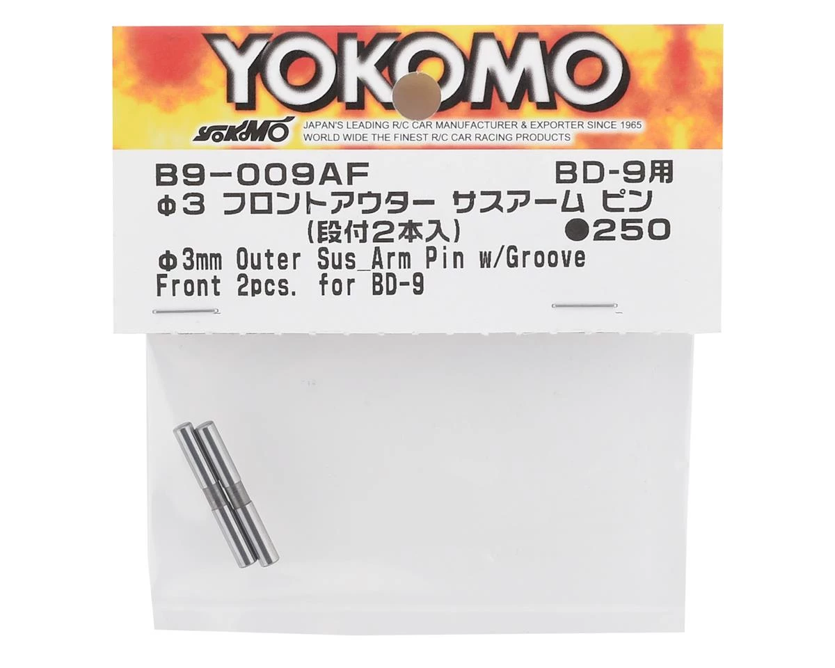This is a pack of two replacement Yokomo 3mm Front Outer Suspension Arm Pins for the BD9 2019.