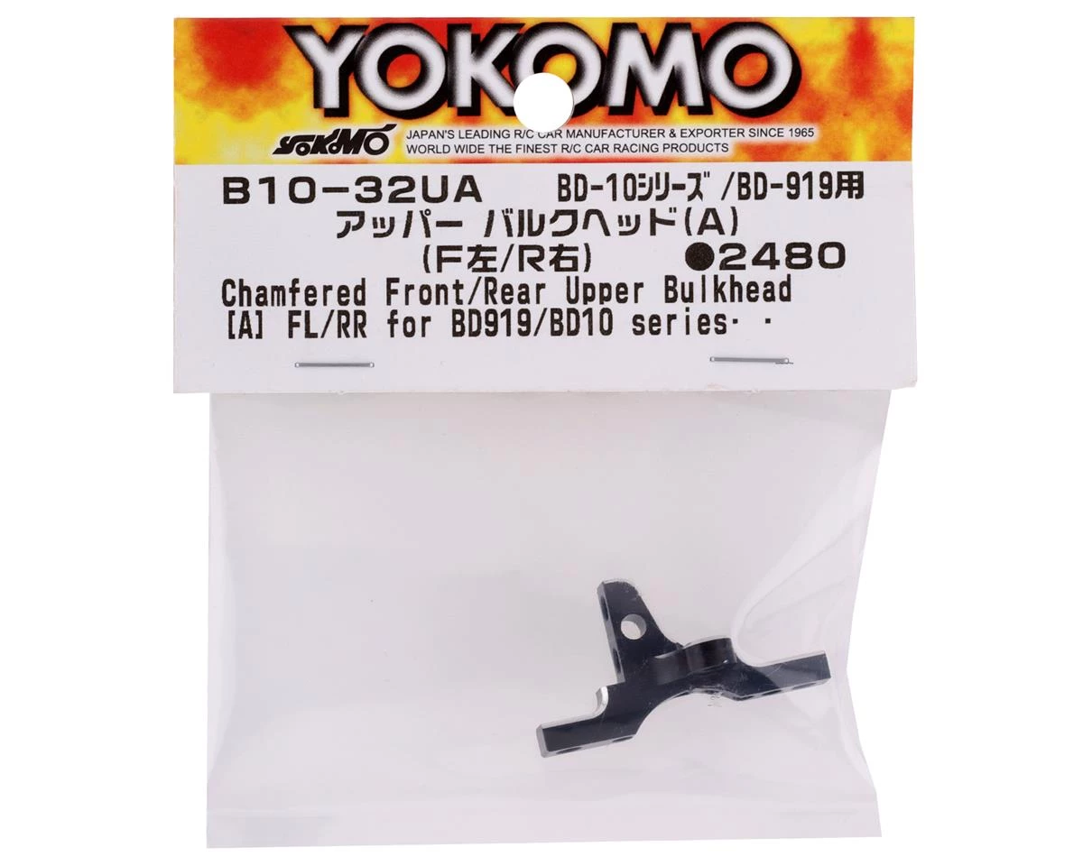 Yokomo BD9/BD10 Upper Bulk Head A. This optional upper bulkhead is intended for the front left or the right rear of the Yokomo BD9 or BD10. Package includes one upper bulkhead.