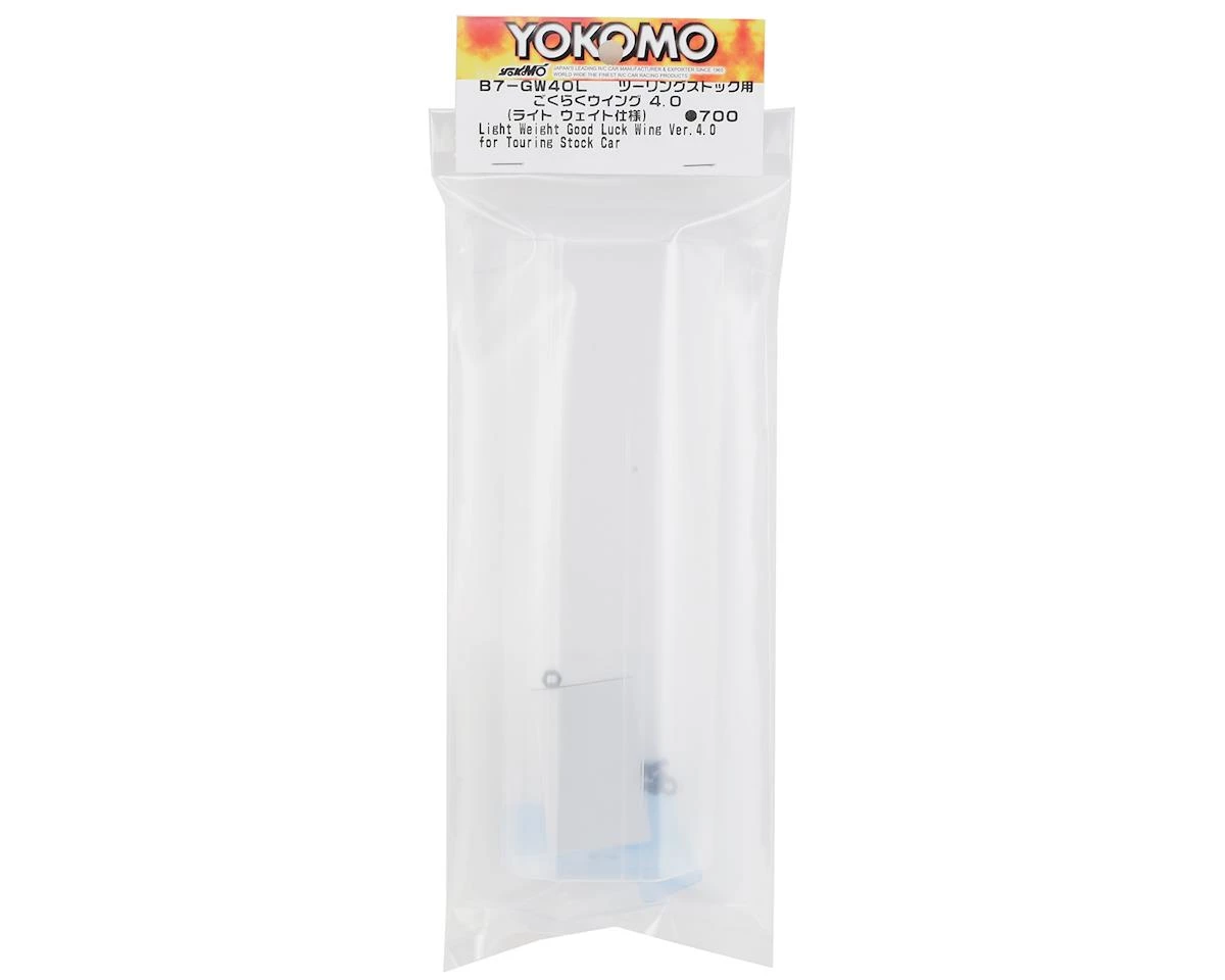 This is a replacement Yokomo Lightweight Good Luck Wing V4 1/10 Touring Car Wing. This lightweight specification wing is made lightweight by altering the material of the wing 4.0 to thin things. Although the wing is the same shape as the standard bare wings, downforce decreases due to differences in material strength and weight, and turning performance increases. Especially in the stock category of touring car; it is effective in scenes where exercise performance is required rather than rear traction. The attached side dam is also a lightweight type.