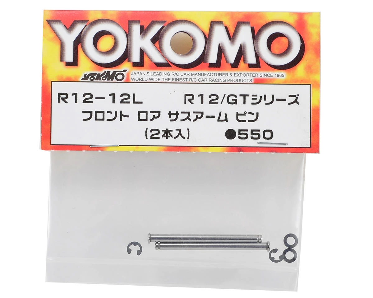 This is a replacement Yokomo Lower Front Suspension Arm Pin Set, and is intended for use with the Yokomo R12 1/12 scale pan car. This set includes two pins, two washers and two e-clips.