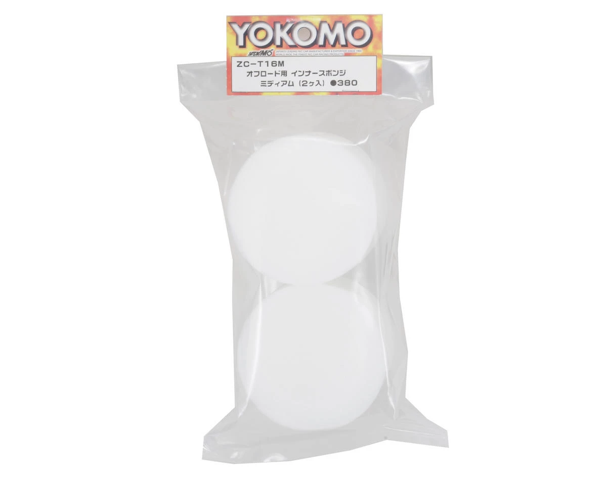 This is a pack of two replacement Yokomo Off-Road Inner Sponges, in Medium firmness. These foams are sized for rear tires, but can be trimmed down to be used in front tires.