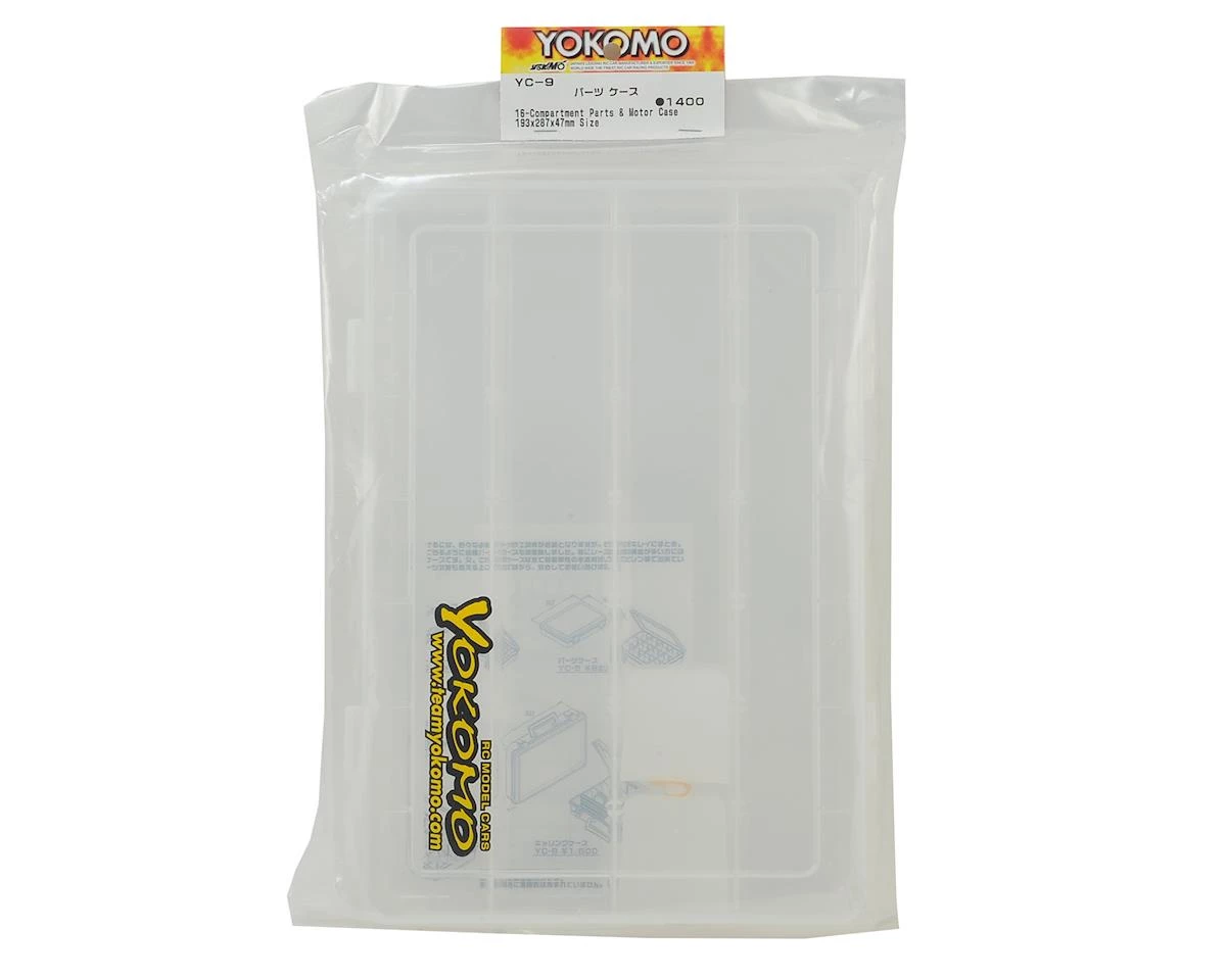 The YC-9 parts case is a med-large box with a shallow bottom best suited for hardware, parts and 540 sized motors. The YC-9 features four compartment rows, with each row being able to divide into 7 compartments.