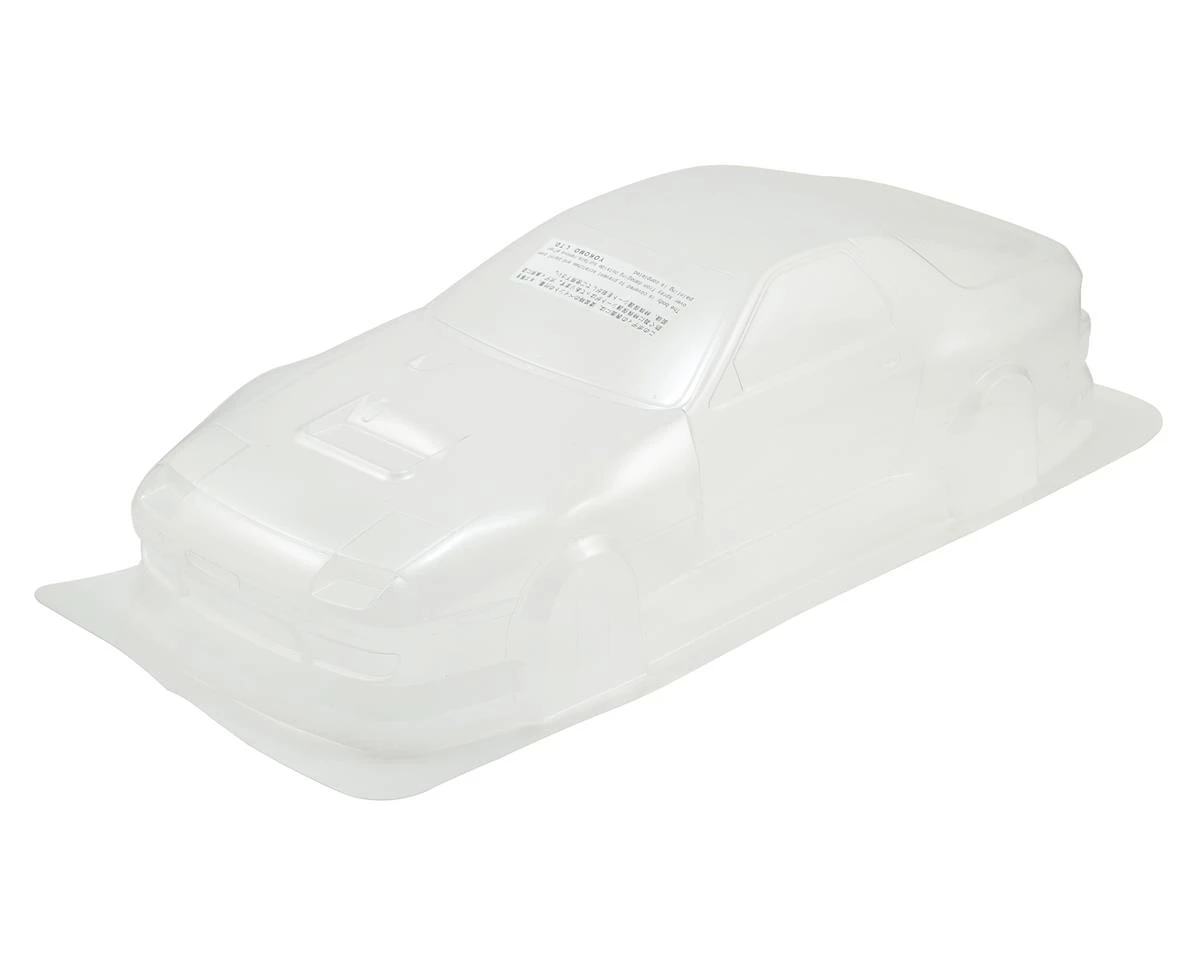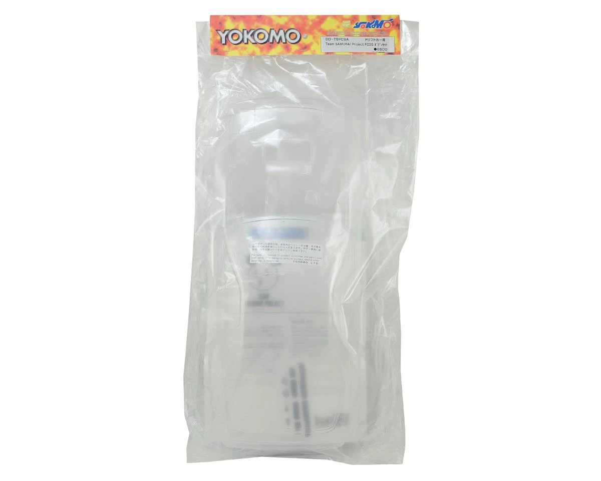 This is the Yokomo Team SAMURAI Project FC3S Drift Body Set. This set includes a clear polycarbonate body, window masks and a full body graphics kit. In addition, this body set includes plastic body accessories; such as wing, mirrors and exhaust.