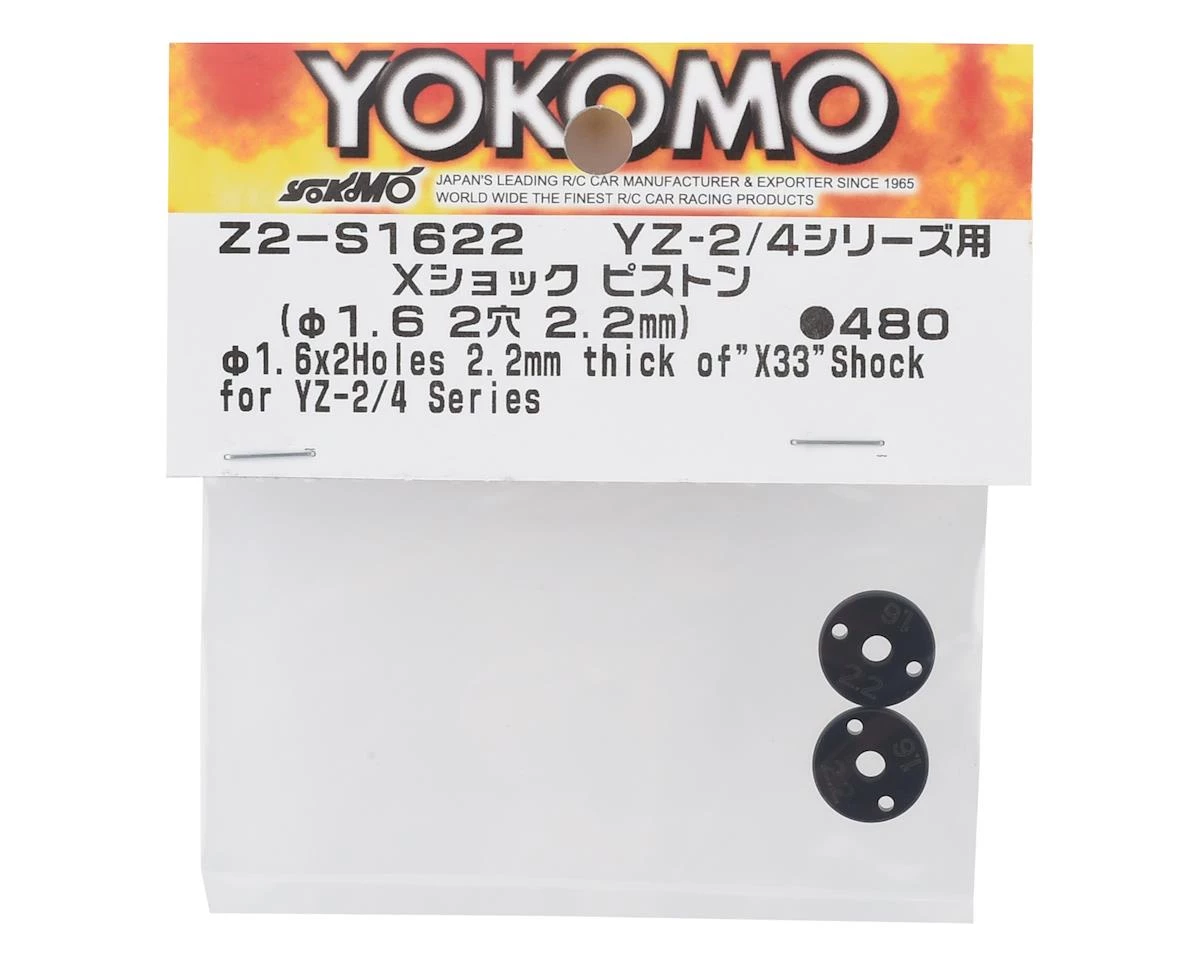 The Yokomo X33 X Shock Piston Set is intended for use with the Yokomo YZ-2 Electric Buggy Kits using X33 shocks. This pack includes of two 2.2mm thick, 2 x 1.6mm hole pistons.