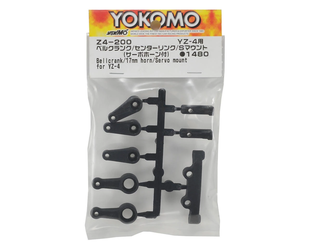 This is a replacement Yokomo YZ-4 Steering Bellcrank and Servo Mount Set. This package also includes the steering rack and 17mm Servo Horns to fit most popular servo splines.