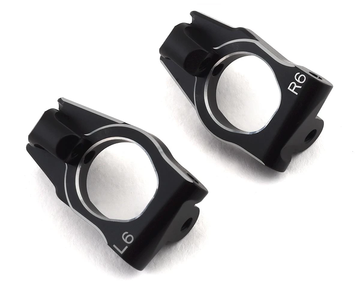 Yokomo YZ-4SF2 “6dig” Aluminum Steering Hub Carrier. Package includes one left and one right steering hub carrier.